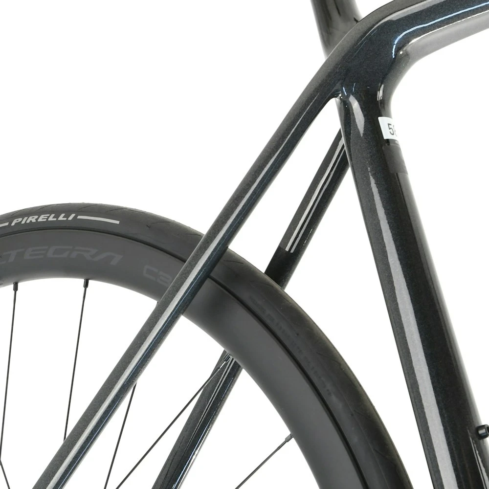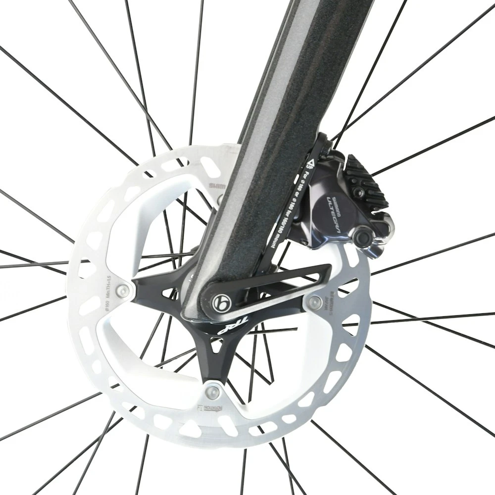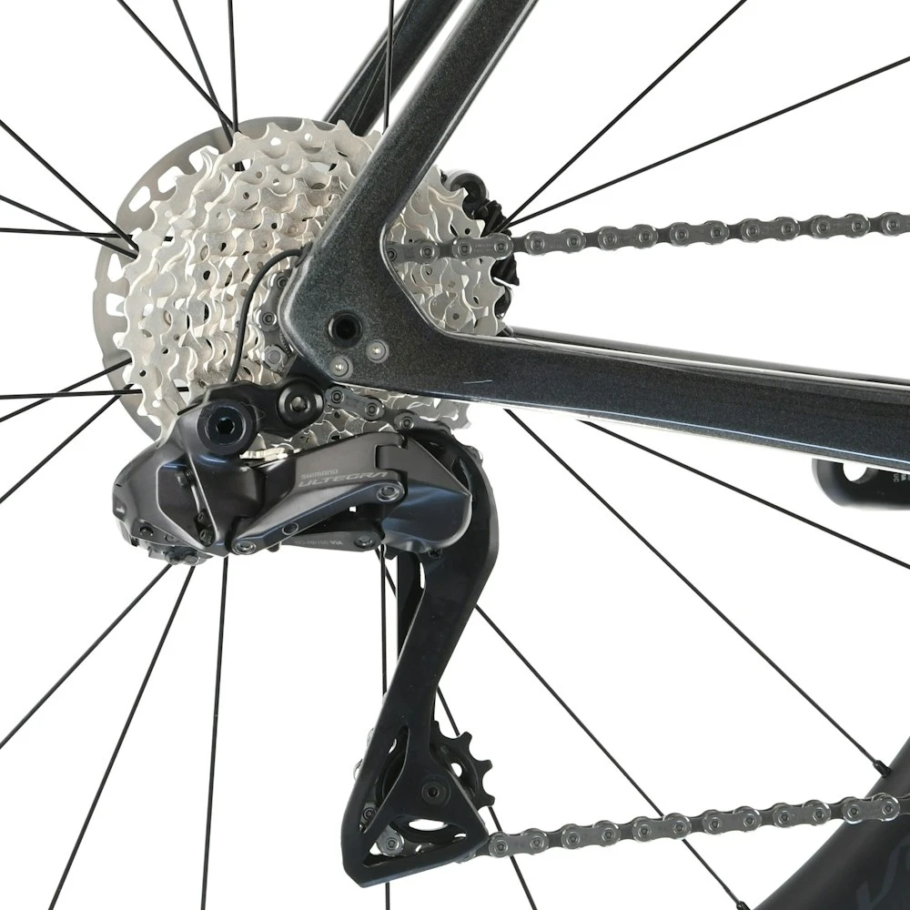 An ultralight and aerodynamic 800 Series OCLV Carbon frame that weighs under 700 grams, a full carbon fork, a wireless 2×12 Shimano Ultegra Di2 electronic drivetrain, lightweight Shimano Ultegra C36 Carbon tubeless ready wheels, and powerful hydraulic disc brakes.